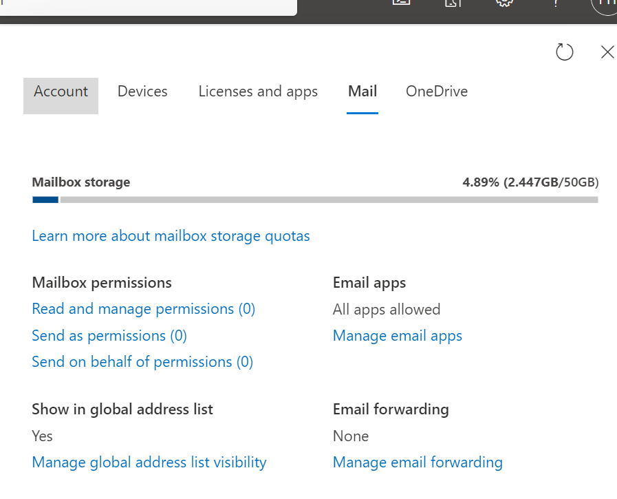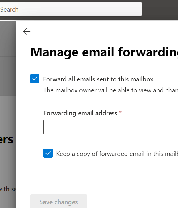 On the Mail tab, select Manage email forwarding.